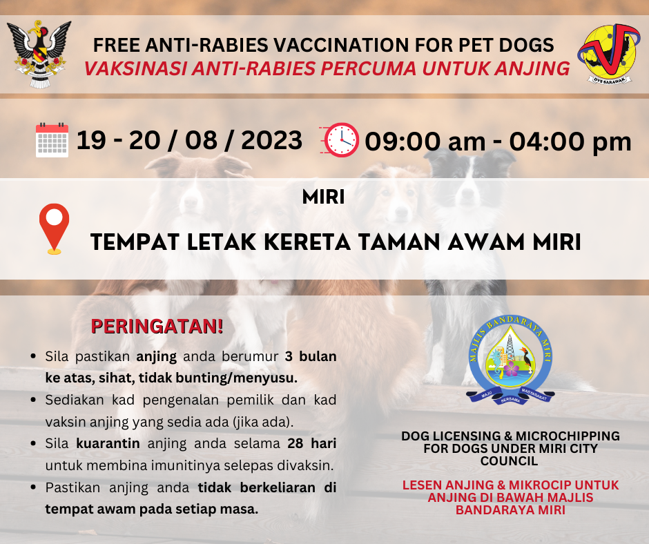 19 - 20 August 2023: Anti-Rabies Mass Vaccination at Tempat Letak Kereta Taman Awam, Miri
